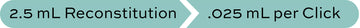 The trusted BLUE syringe, optimized for a 2 mL reconstitution and celebrated for its precise one-unit-per-click dosing, is now joined by a Green syringe, calibrated for a 2.5 mL reconstitution.